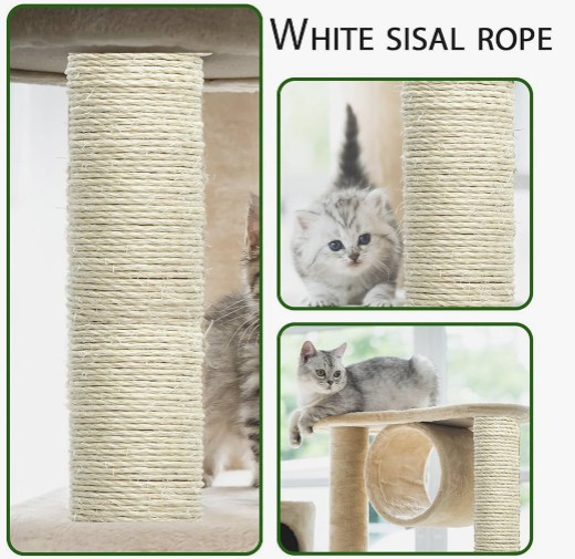 4. všestrannost: Sisalové póly mají v konstrukci stromů koček různé aplikace. Mohou být použity jako podpůrné struktury pro horolezectví a poškrábání a lze je také použít k výrobě plnicích materiálů pro hnízda koček a kočičí postele. Měkkost a prodyšnost sisalového vlákna poskytují kočkám pohodlné a zdravé klidové prostředí, zvyšují jejich zkušenosti s využitím a uspokojení.