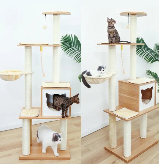 Jako hlavní materiál lezeckého rámu stromu kočky dřevěné věže je dřevo šetrné k životnímu prostředí a má mnoho výhod. Může poskytnout kočkám zdravý, bezpečný a pohodlný životní prostor. Při výběru kočičího stromu je velmi moudrá volba zvolit ekologicky šetrné dřevo.