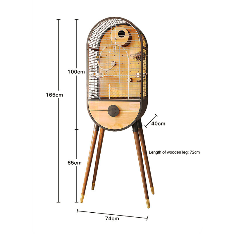 Tato dřevěná ptačí klece dokonale kombinuje praktické funkce s ekologickou estetikou a poskytuje bezpečný a hygienický obytný prostor pro ptáky.