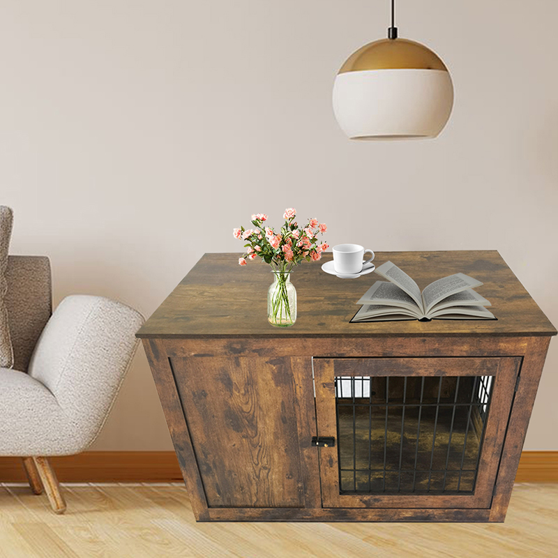 1. High-end záruka materiálu: Nábytek ve stylu psí klece vybraná deska částic a nízkou uhlíkovou ocelovou kombinovanou strukturu, s dřevěnou spodní konzolou na anti-pinch nohou, odolnost i bezpečnost domácích zvířat.