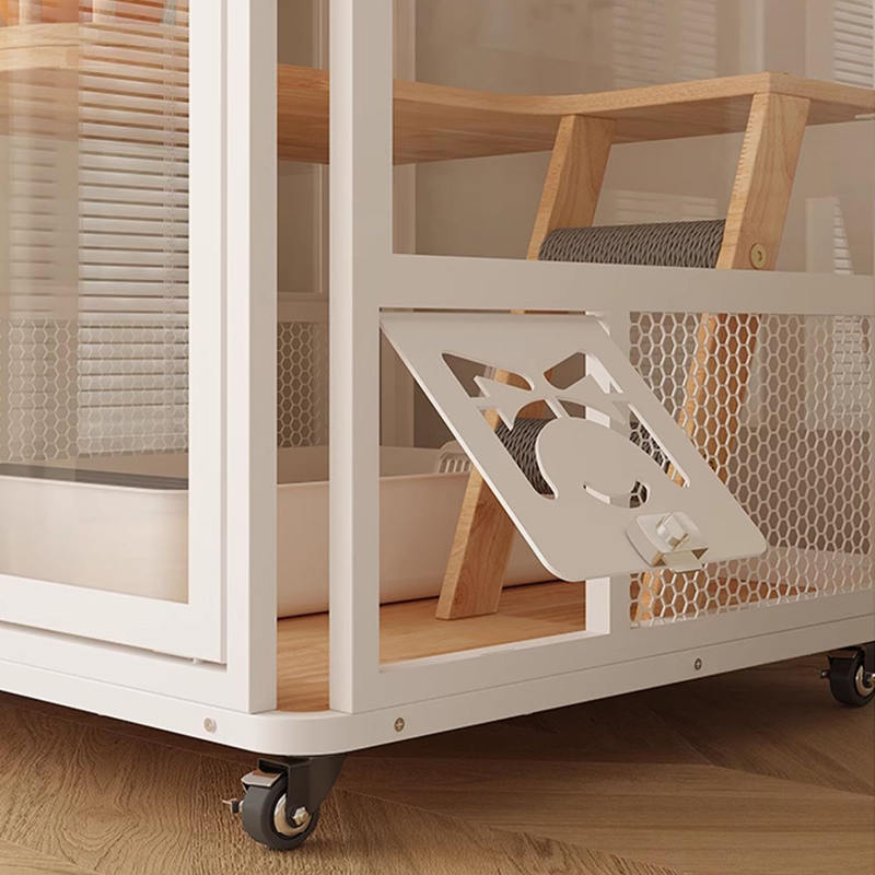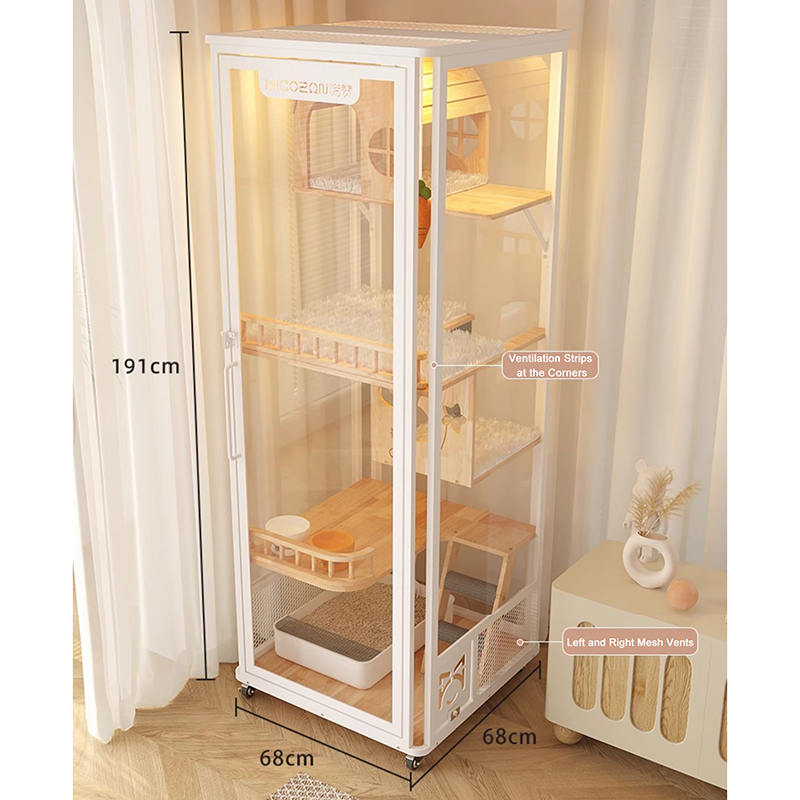 5. Humanizovaná konfigurace: Vybaveno silnou univerzální kola s nosností, volným vstupním a výstupním dveřím s podlahovými zástrčkami, ohleduplnými detaily a chrání bezpečnost vaší kočky.